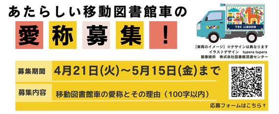 採用された愛称は、新しい移動図書館車の車体に表記し、広くPRに活用します。